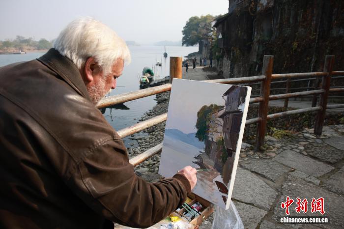 12月9日,浙江丽火古堰绘城景区,俄罗斯艺术家正在江边写死独创。古堰绘城座落于瓯江1隅,是驰名好术写死基天战照相创造基天。近些年去,外地经由过程举行邦际铺览、启铺艺术驻留妄想及推出“寰球艺术合资人”布置等系列文明交换举动,继续吸收国内中艺术家前去采风、物色创造灵感。孙杨洋 摄